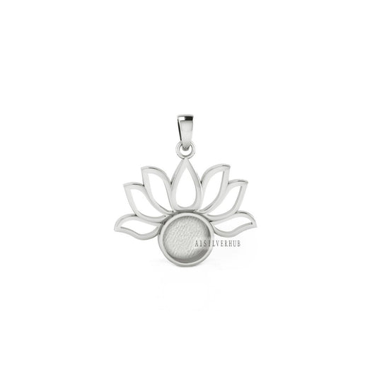 925 Sterling Solid Silver Lotus Flower 9mm Round Blank Bezel Pendant Settings, Good for Resin & Ashes Work, Breastmilk/Keepsake, DIY Crafts