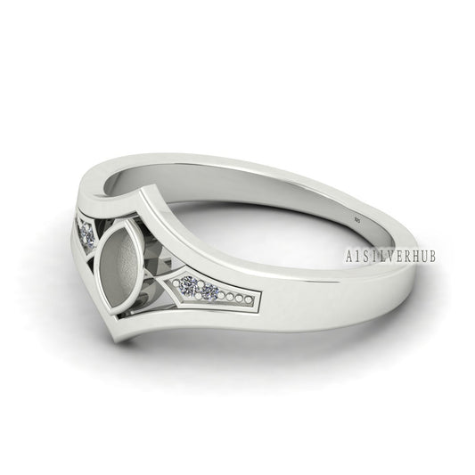 925 Sterling Solid Silver Marquise Blank Bezel with CZ Set Ring, Good for Resin & Ashes Breastmilk DIY Work, Keepsake Ring, Memorial Jewelry