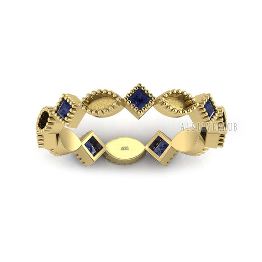 925 Sterling Solid Silver Marquise Blank Bezel with Square CZ Setted Eternity Band Ring,Good for Resin & Ashes Work, Keepsake Breastmilk DIY