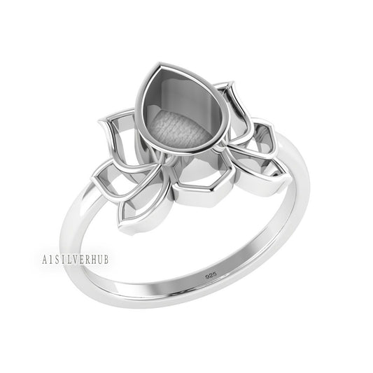 925 Sterling Solid Silver Lotus Flower Pear Blank Bezel Ring Setting, Good for Resin & Ashes Work, Keepsake Breastmilk Jewelry DIY Crafts
