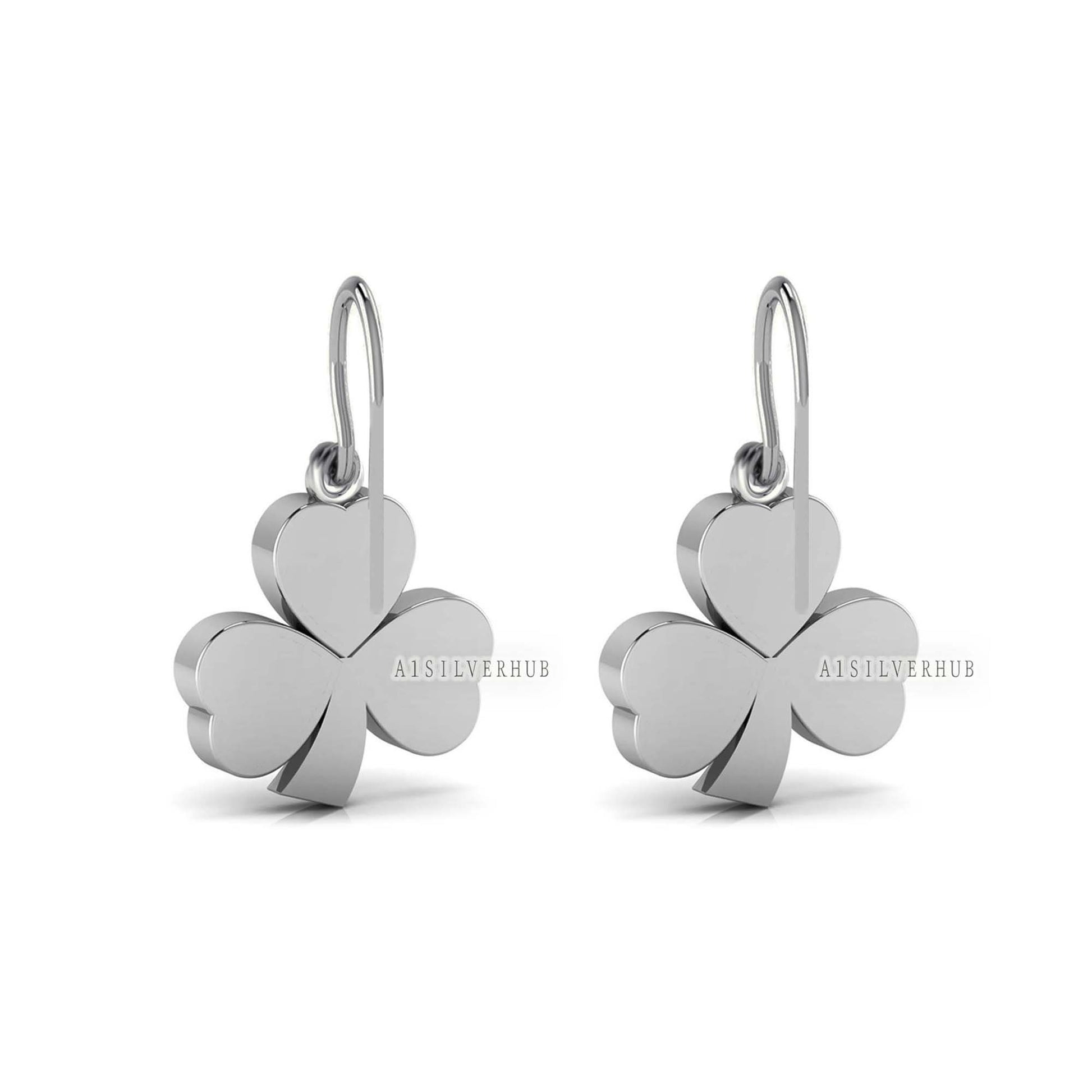 Shamrock Clover Three Leaf Heart 9x9mm Blank Bezel Dangle Earrings, 925 Sterling Silver,Good for Resin & Ashes Work, Keepsake/Breastmilk DIY