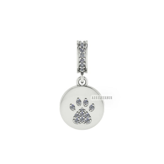 925 Sterling Silver Dog Paw Print Charm For Bracelet with Clear Cubic Zirconia - Perfect Gift for Christmas and Keepsake Memorial, Pet Lover