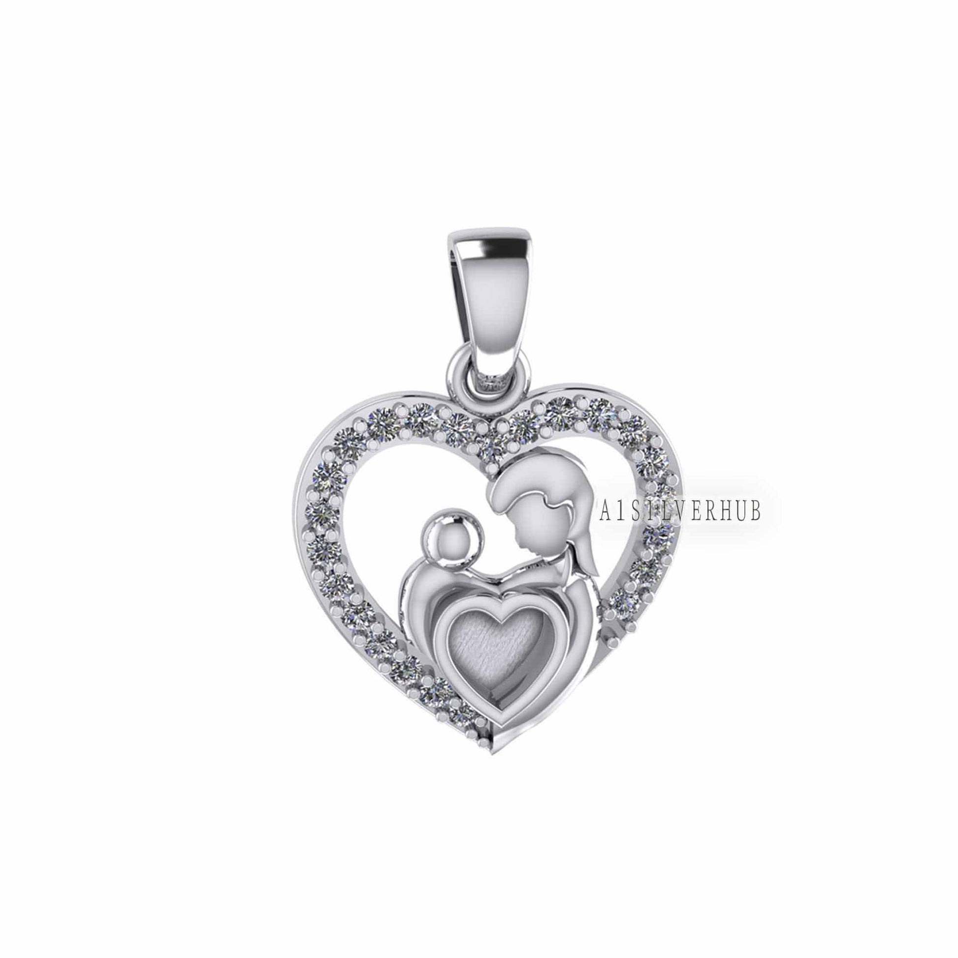 925 Sterling Silver Mother & Baby Heart 4mm Blank Bezel Pendant Setting, For Pour Resin, Breastmilk DIY, Keepsake Jewelry, Memorial Jewelry