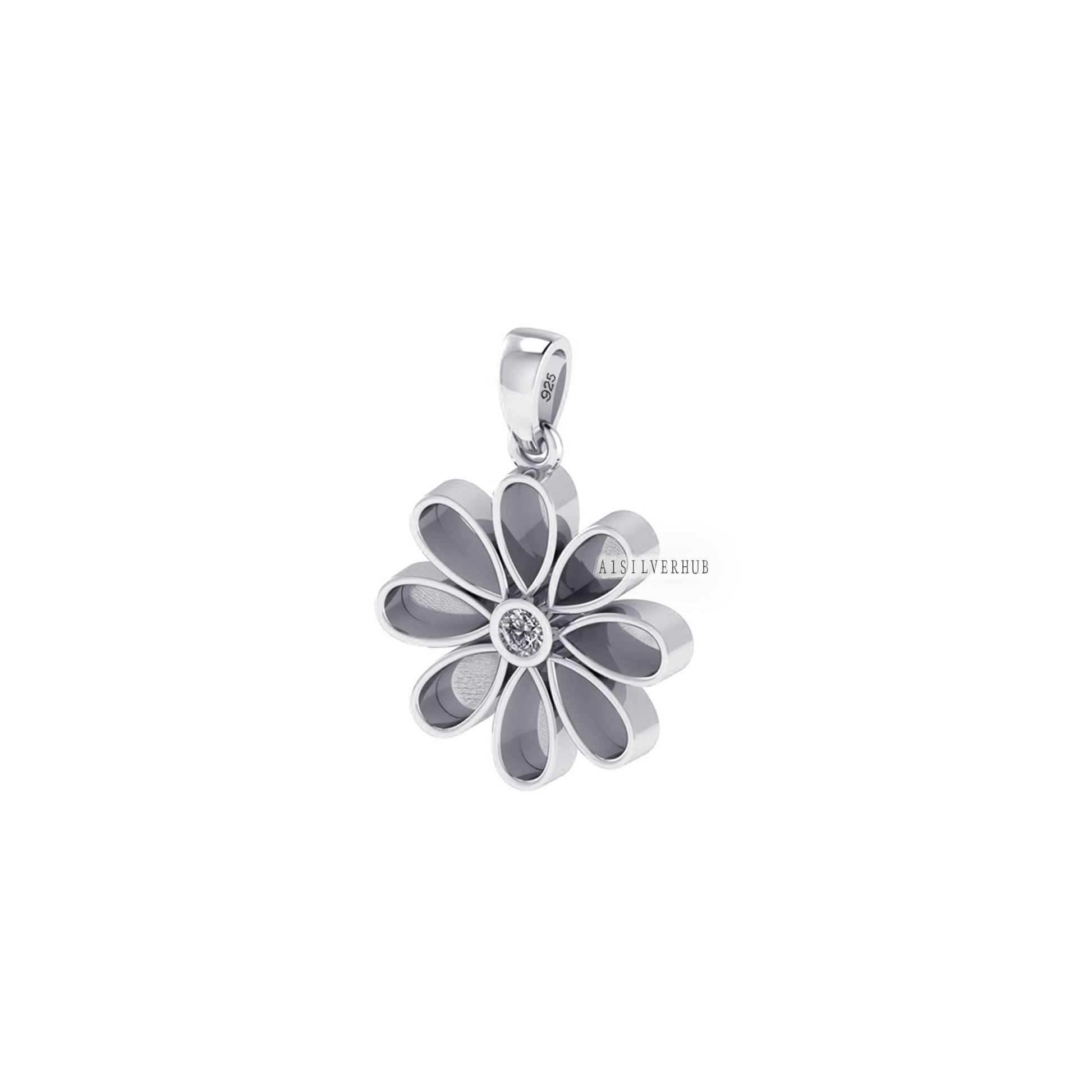 925 Sterling Silver Sunflower Floral Pear Blank Bezel with CZ Setted Pendant, Good for Resin & Ashes, Breastmilk/Keepsake Memorial DIY Craft