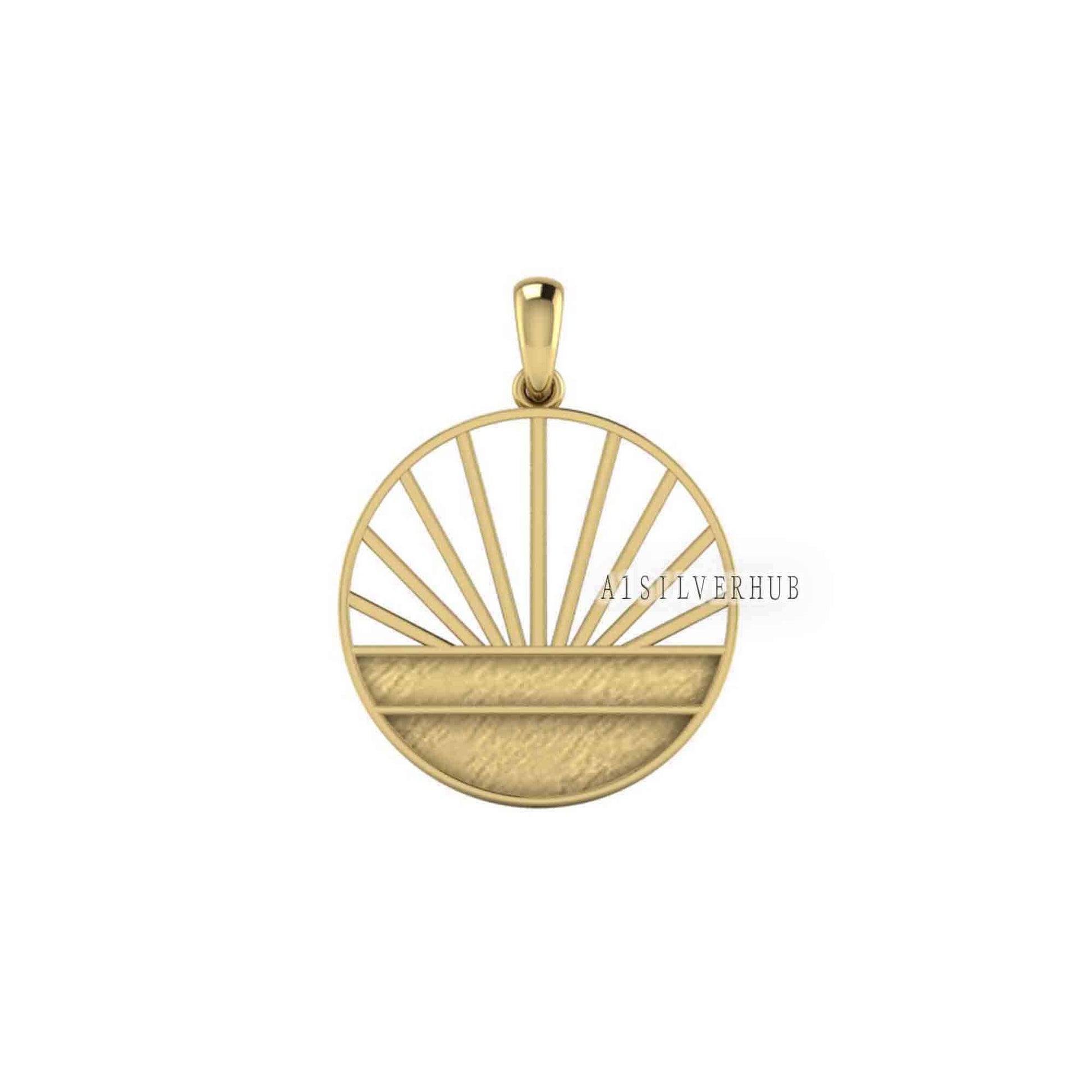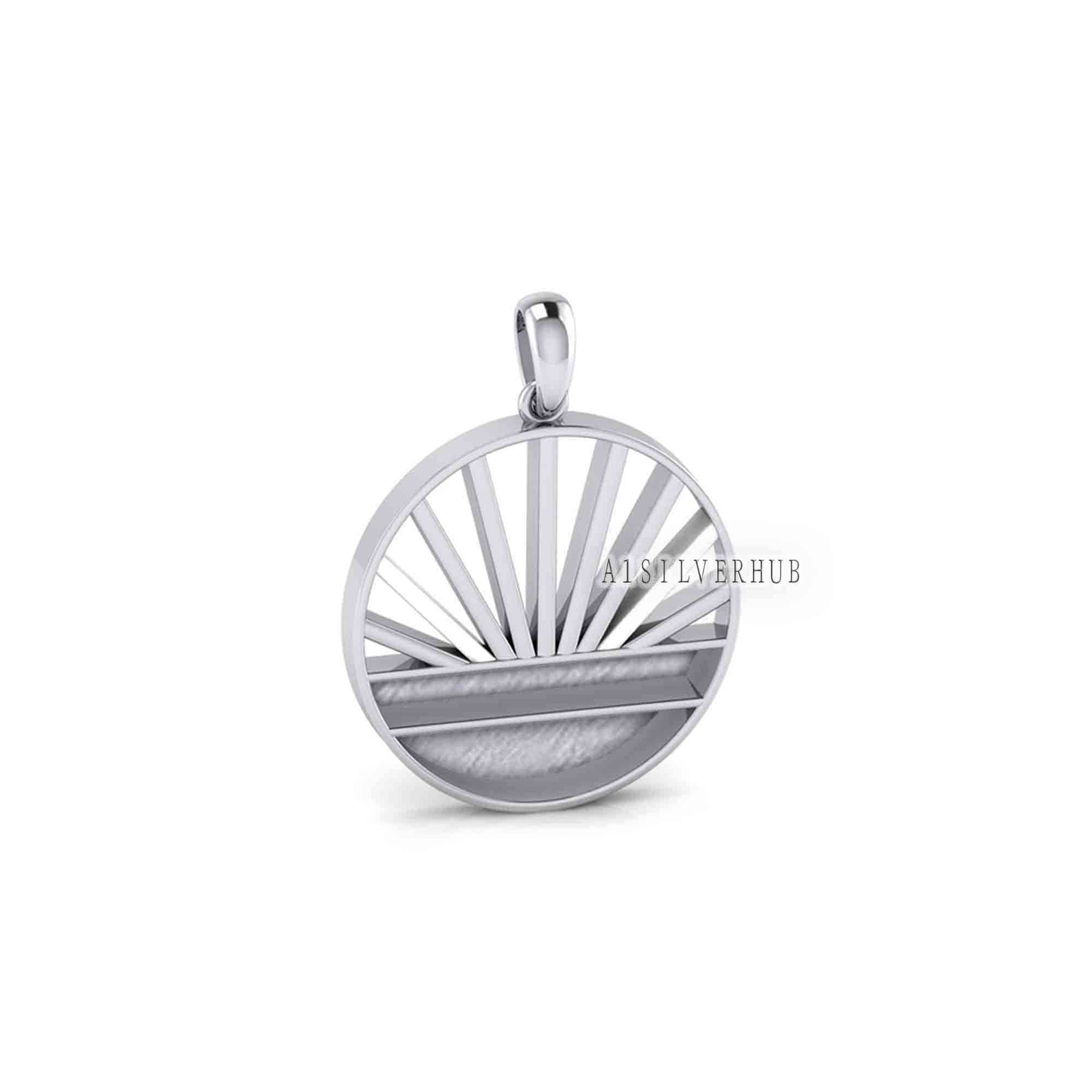 925 Sterling Solid Silver Ocean Sunrise Blank Bezel Pendant, Good for Resin & Ashes Work, Keepsake Memorial Jewelry, Breast Milk DIY Crafts