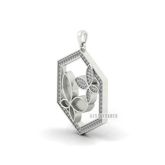 925 Sterling Silver, 26mm Hexagon with Butterflies Blank Bezel CZ Setted Pendant Setting For Pour Resin & Ashes, Breastmilk/Keepsake Crafts