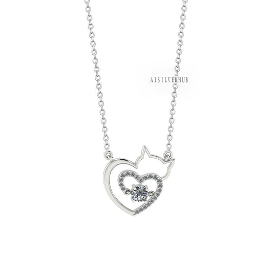 Cat Loved Pendant, Heart Love Charm Necklace, Minimalist Kitty Necklace, Cat Lover Gifts, Animal Jewelry, Memorial Necklace, Keepsakes
