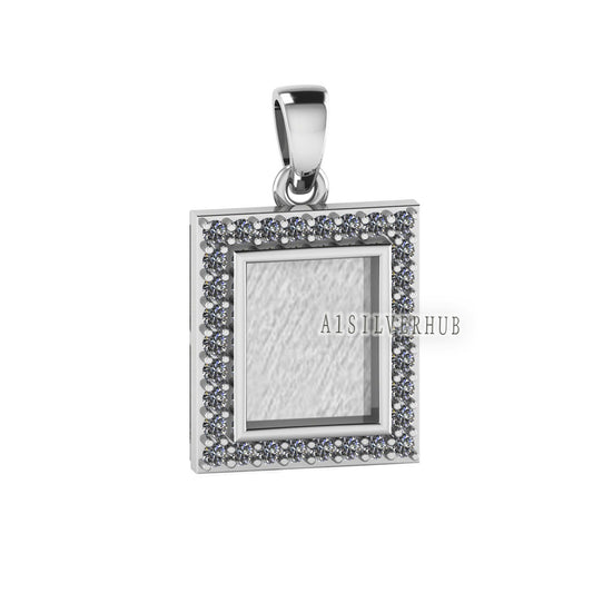 Rectangle Shape 8x10mm Blank Bezel with CZ Setted, 925 Sterling Silver Pendant, Good for Resin & Ashes Work, Keepsake/Breastmilk DIY Crafts