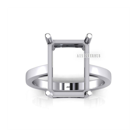 925 Sterling Solid Silver 6x4mm to 13x18mm Rectangle Blank 4 Prong Settings Stackable Ring, Good For Gemstone, Keepsake, Memorial DIY Crafts