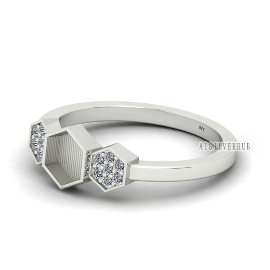 925 Sterling Solid Silver 6x6mm Hexagon Blank Bezel with CZ Setted Ring Settings, Good for Resin & Ashes Work, Keepsake Breastmilk DIY Craft