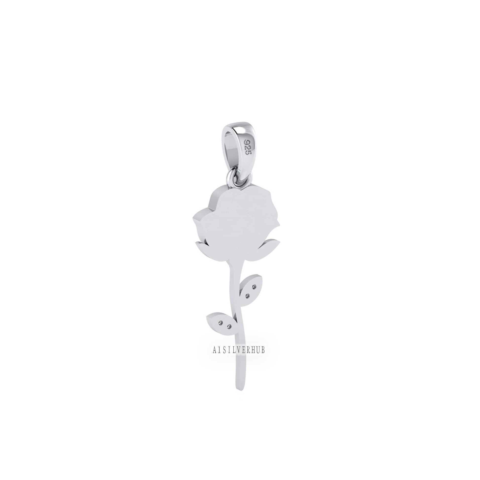 925 Sterling Silver Rose Flower Blank Bezel with CZ Setted Leaf Pendant Setting, Good for Resin & Ashes Work, Breastmilk/Keepsake, DIY Craft