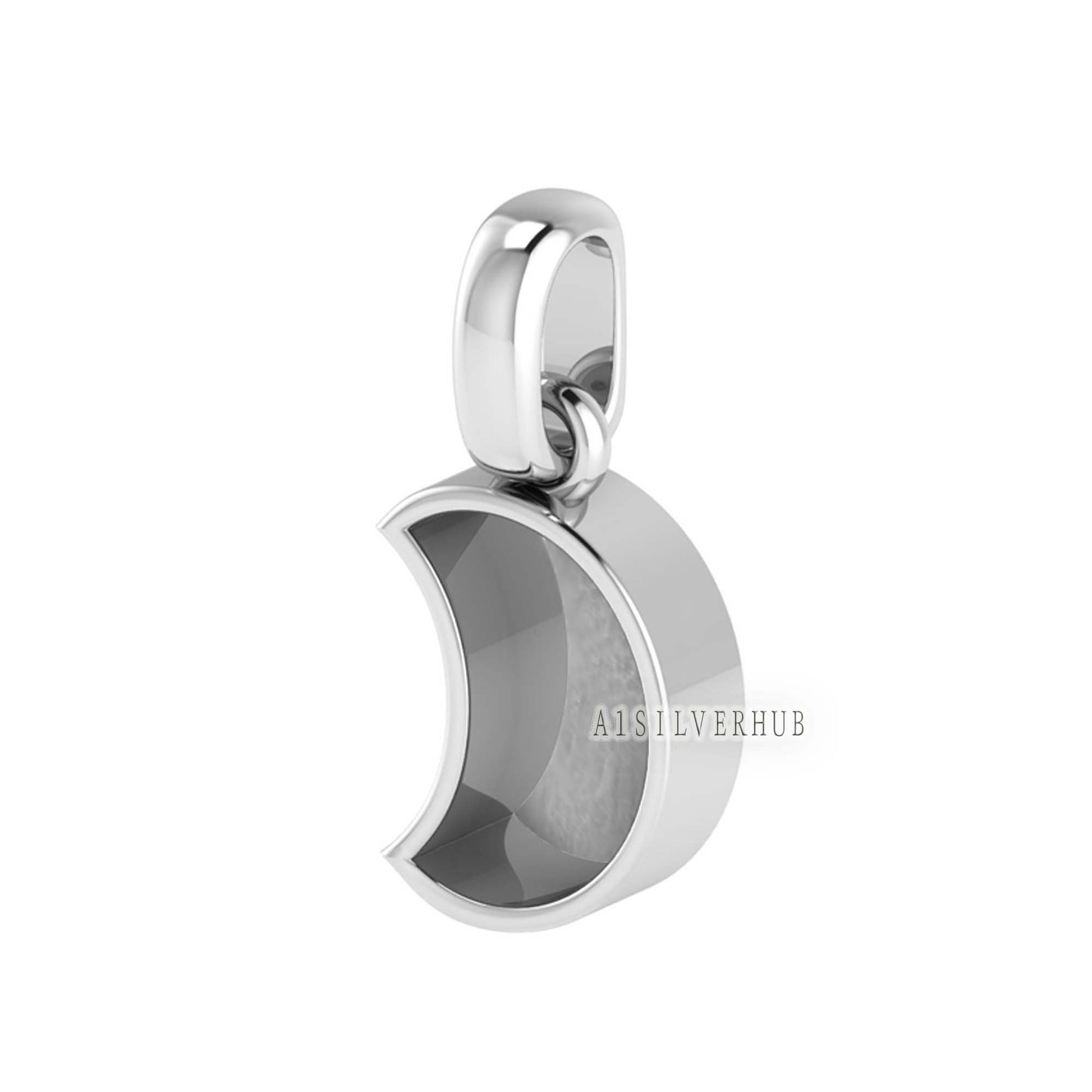 925 Sterling Solid Silver Half Moon Shape DIY Breastmilk/Keepsake Pendant Setting, Good for Resin & Ashes Work, Memorial Locket, DIY Charms
