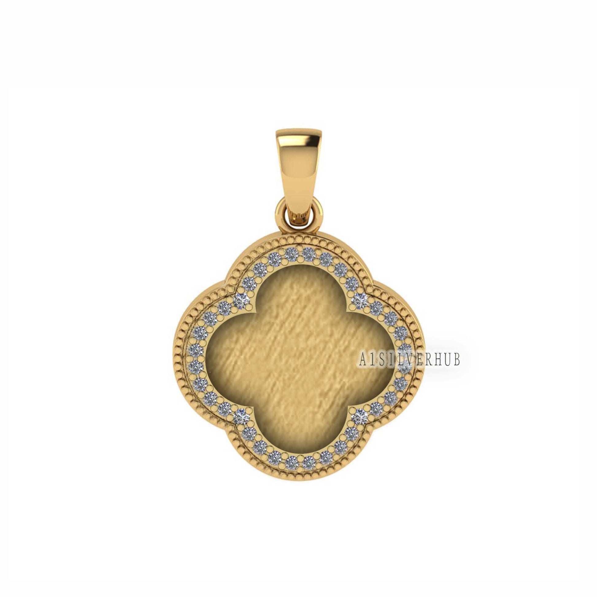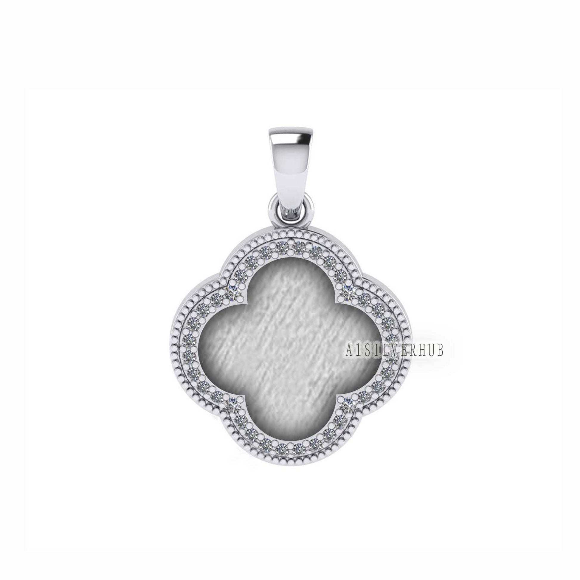 Clover Shape 11.50mm Blank Bezel with CZ Setted, 925 Sterling Silver Pendant, Good for Resin & Ashes Work, Keepsake/Breastmilk, DIY Crafts