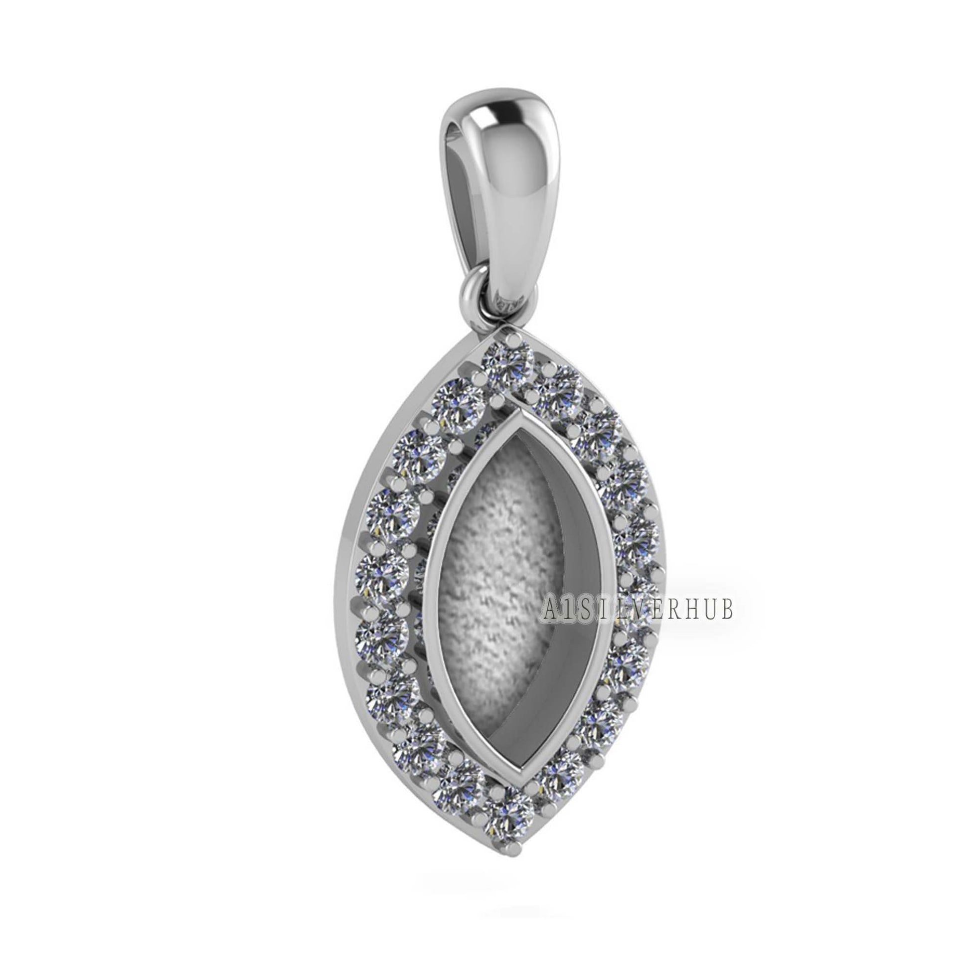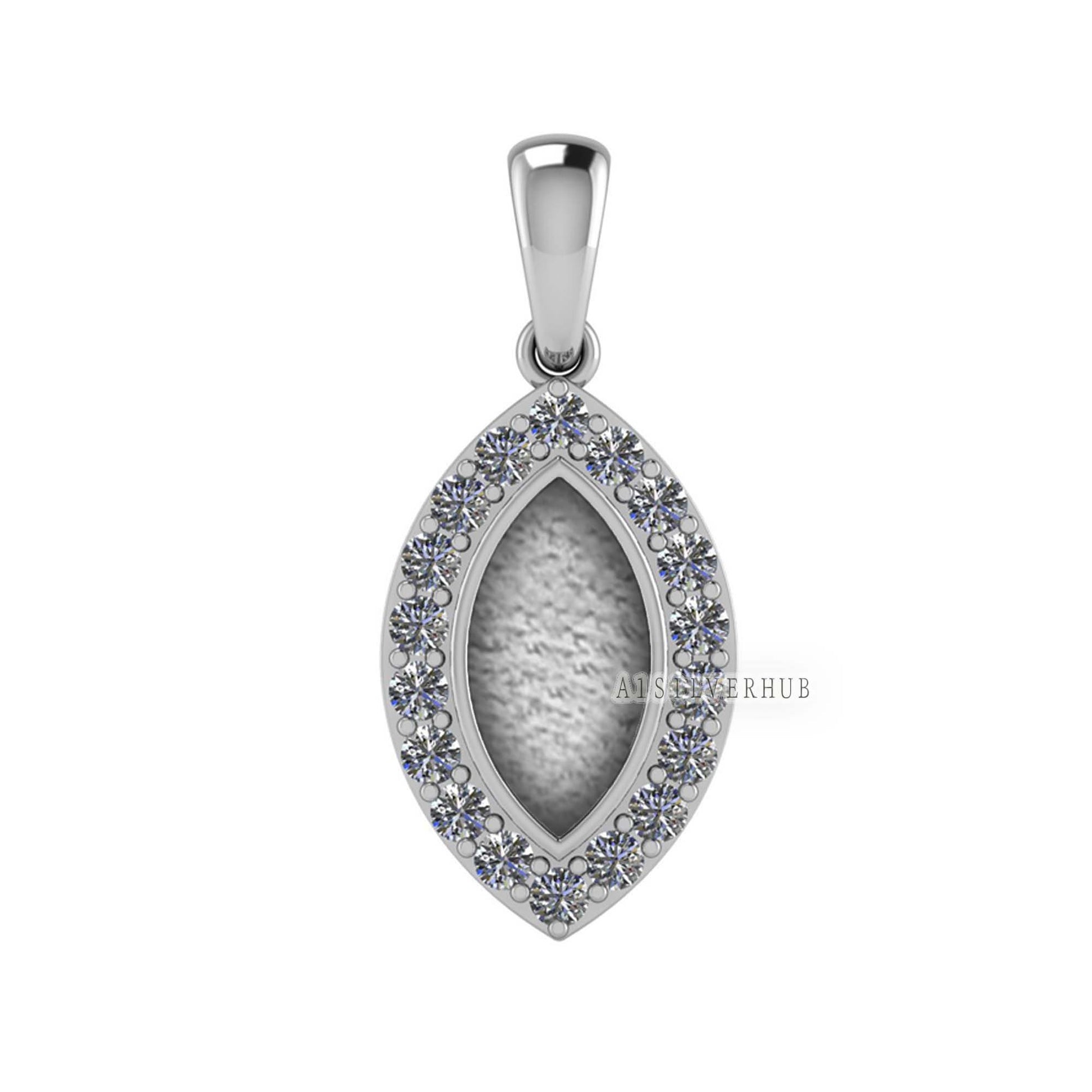 Marquise Shape 6x12mm Blank Bezel Pendant with CZ Setted, 925 Sterling Silver Pendant, Good for Resin & Ashes Work, Keepsake Jewelry Crafts