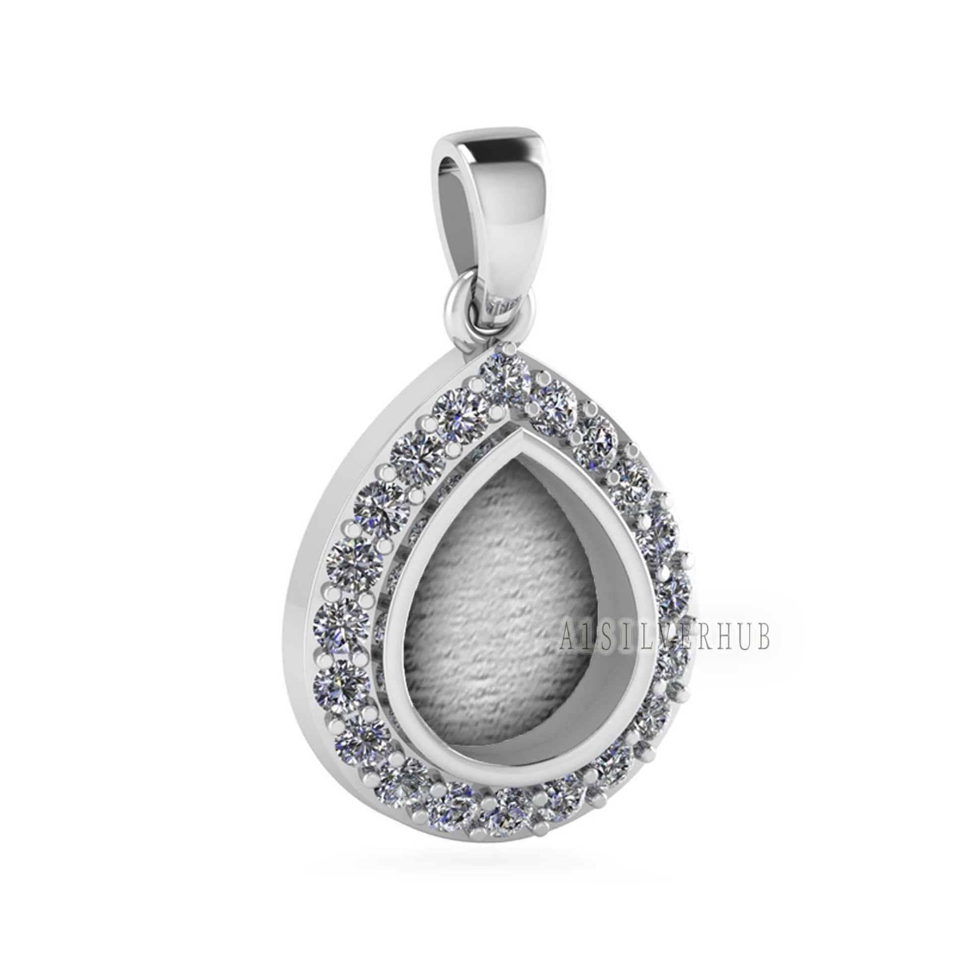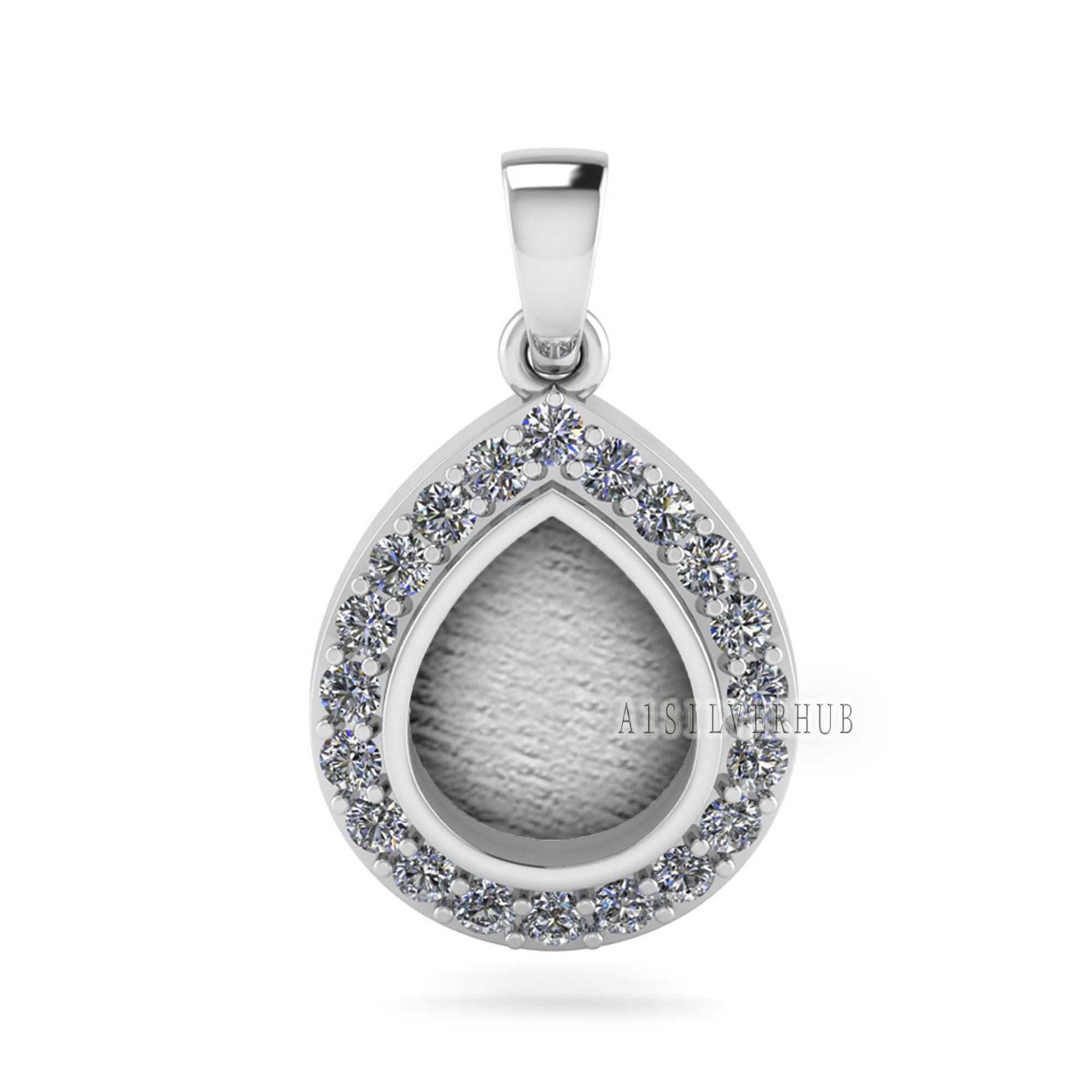Pear Shape 8x10mm Blank Bezel Pendant Surrounded with CZ, 925 Sterling Silver Pendant, Good for Resin & Ashes Work, Keepsake Jewellery Craft
