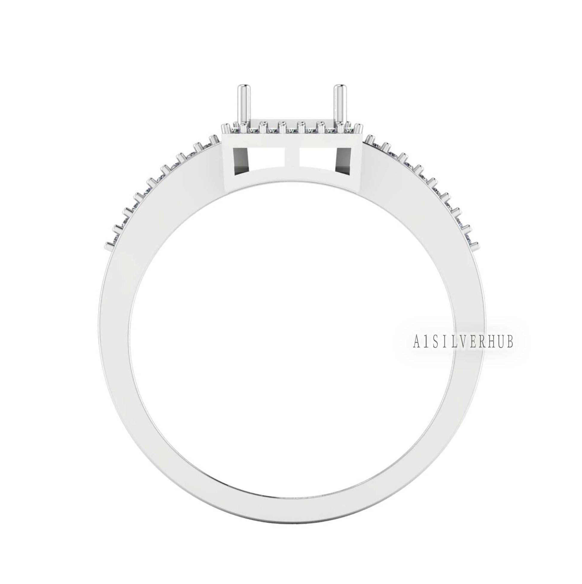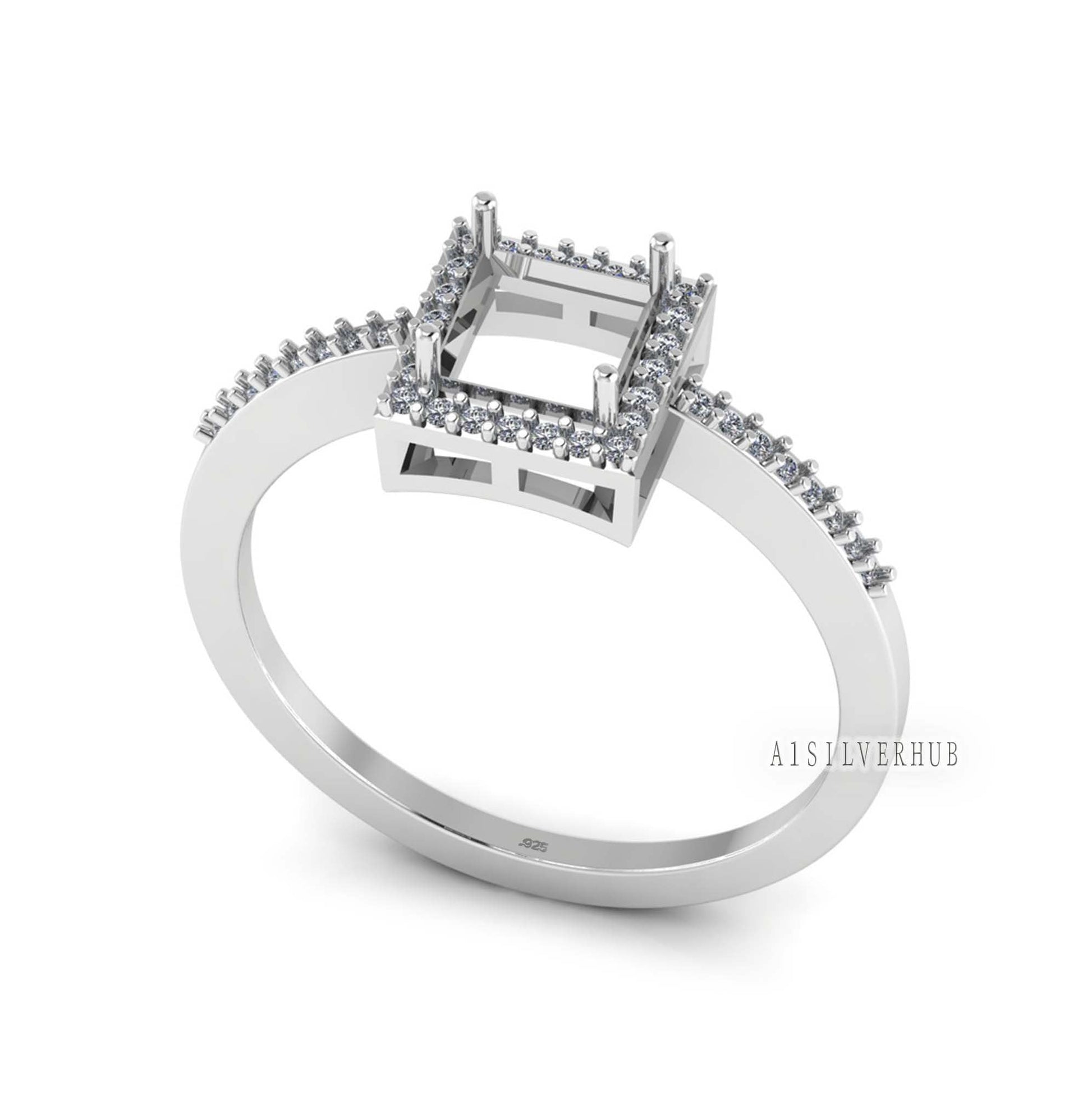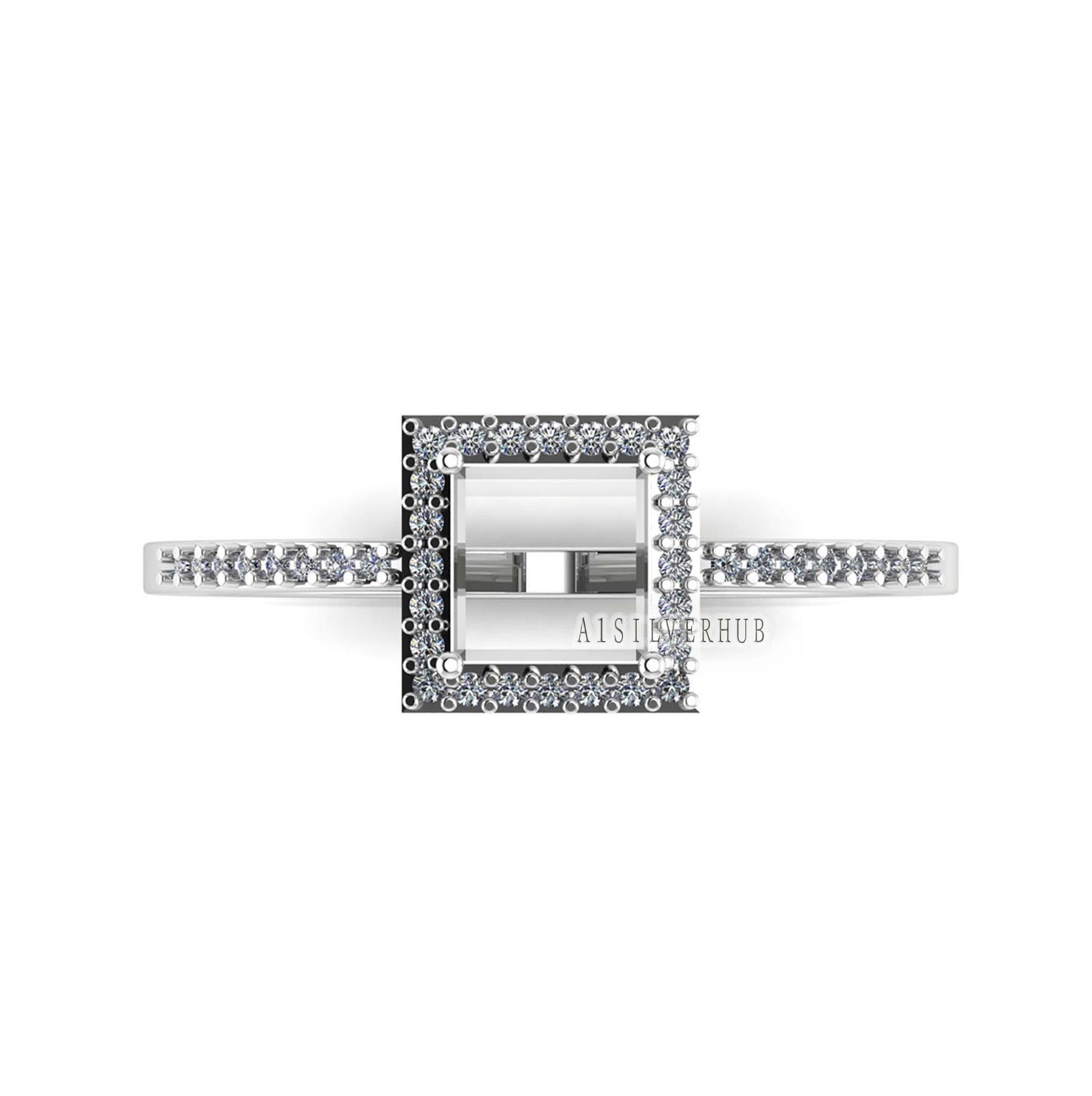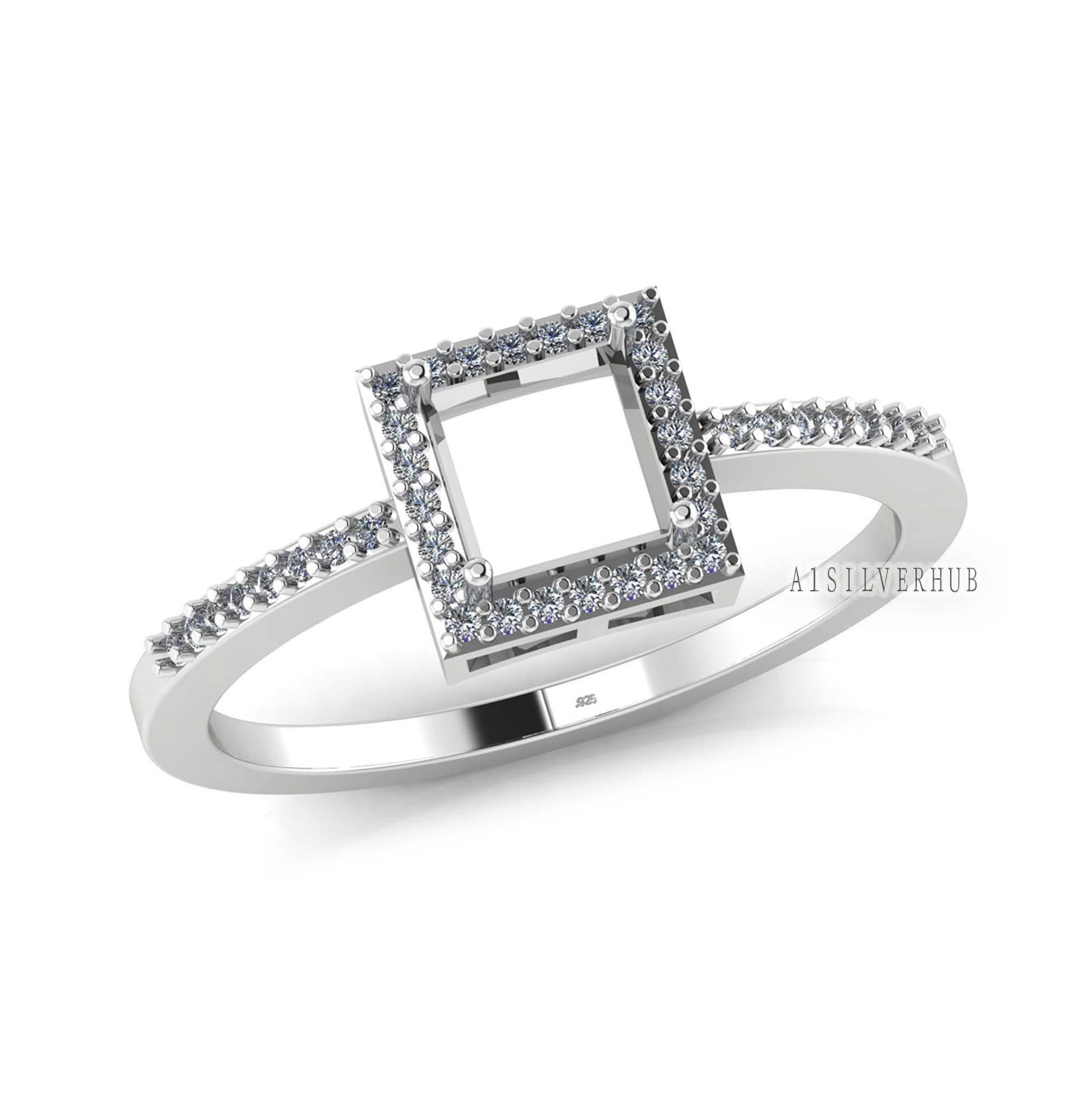 925 Sterling Solid Silver 8x8mm Square Blank Prong with CZ Setted Band Ring Setting, For Gemstone, Keepsake DIY Crafts, Engagement Rings