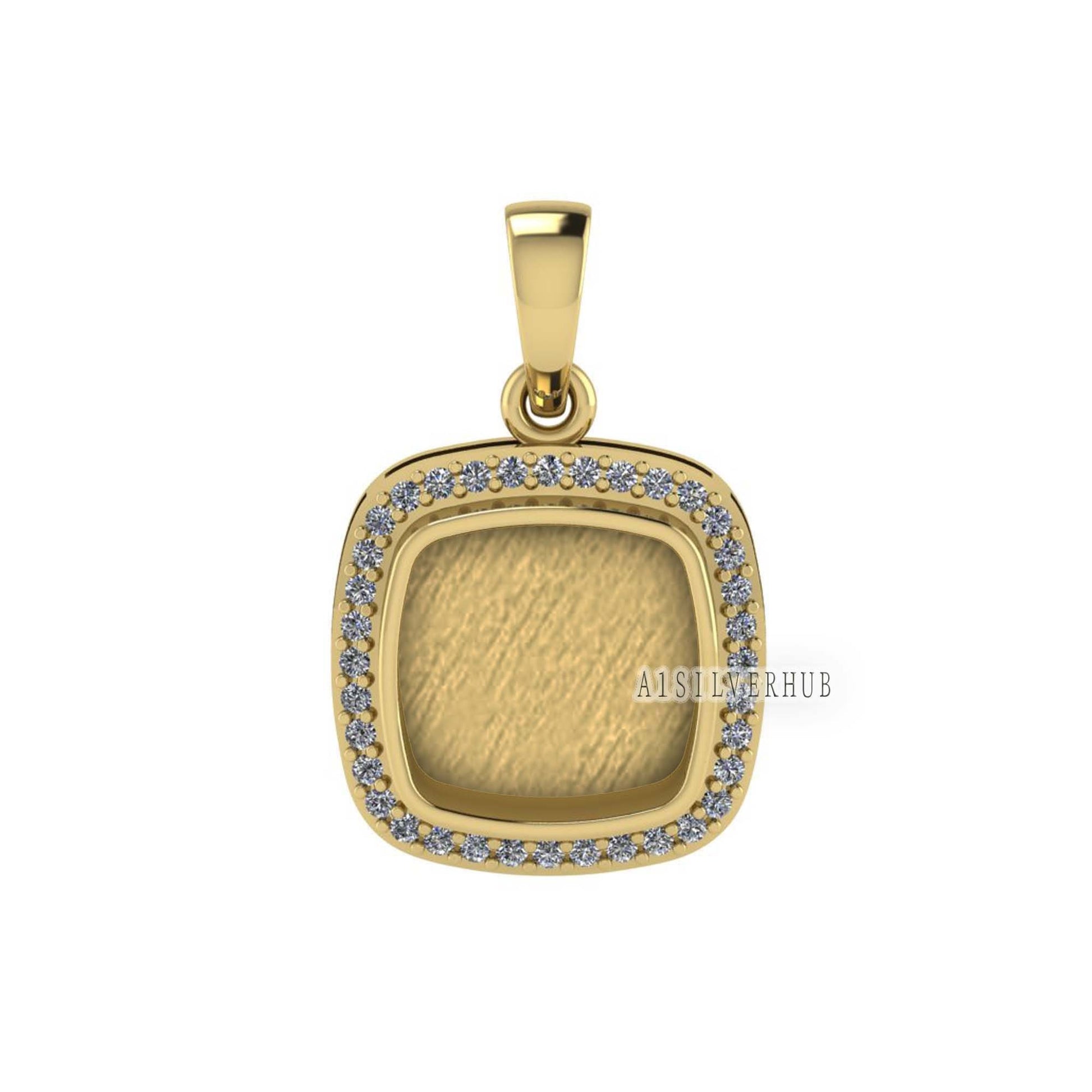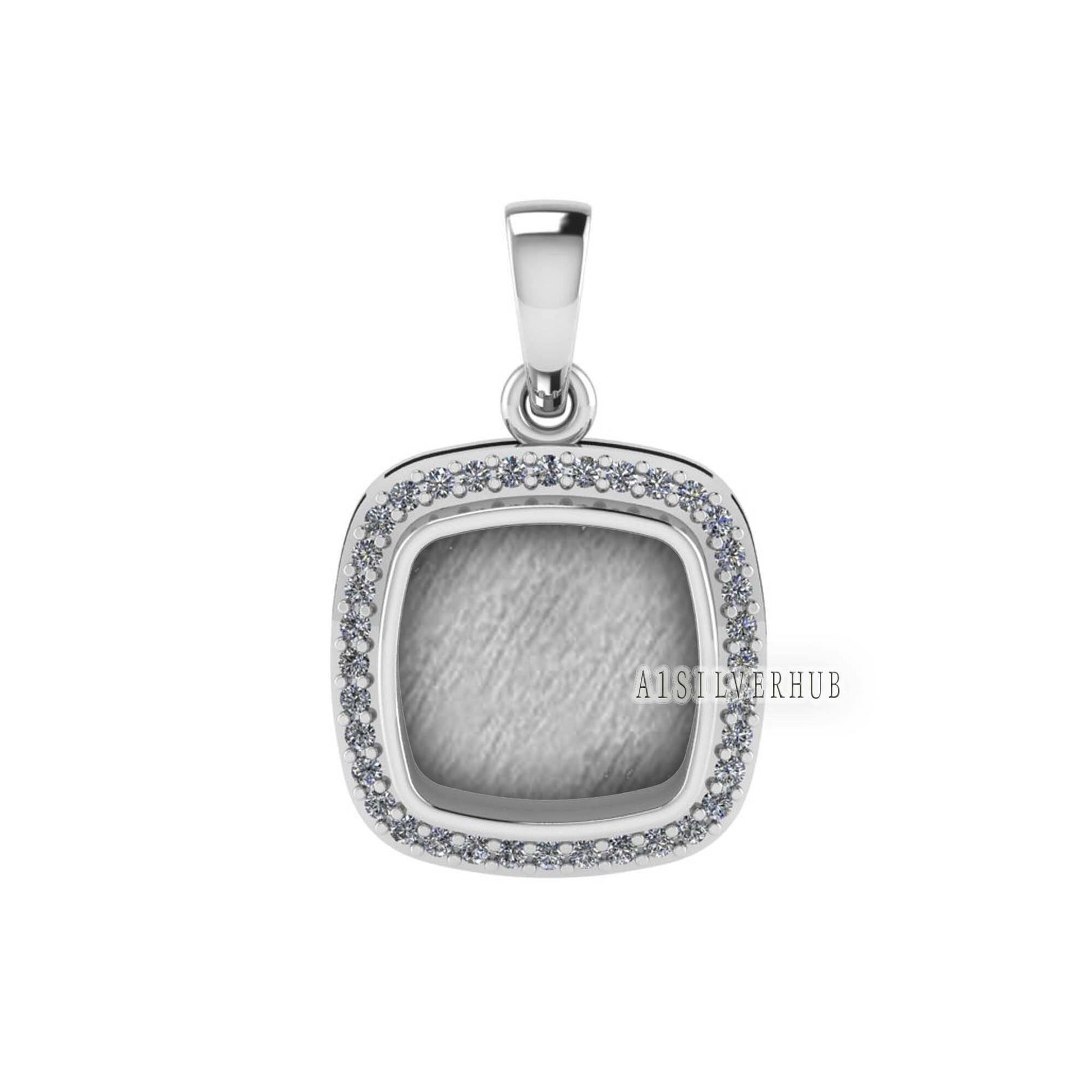 Cushion Shape Blank Bezel Pendant Surrounded with Zircon, 925 Sterling Silver Pendant, Good for Resin & Ashes Work, Keepsake Jewelry Crafts