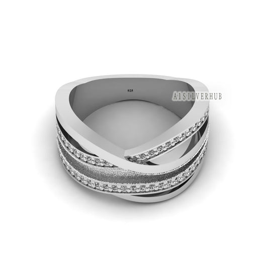 925 Sterling Silver Ladies Waves Ring with Blank Channel and Zircon Setted, Good for Inlay Resin & Ashes Work, Keepsake Breastmilk DIY