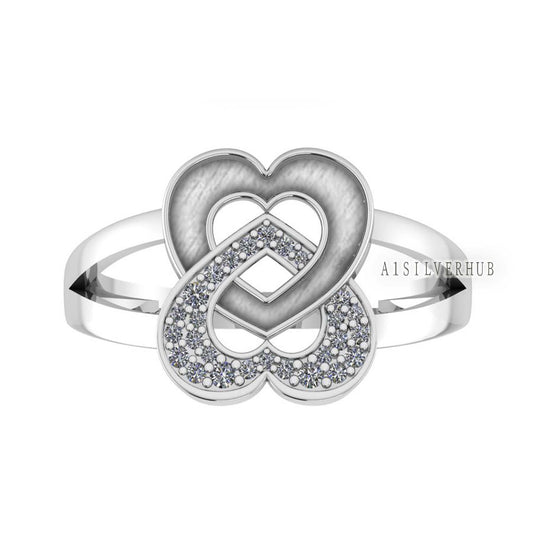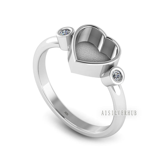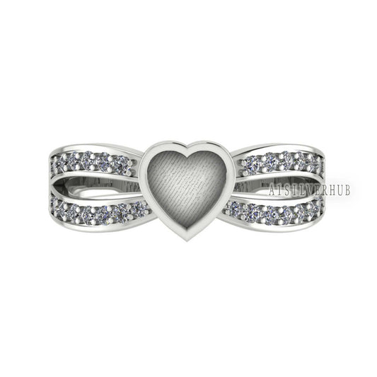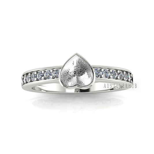 925 Sterling Solid Silver Heart Blank Channel with Zircon Setted Ring, Good for Resin & Ashes Work, Breastmilk DIY, Keepsake Jewelry Crafts