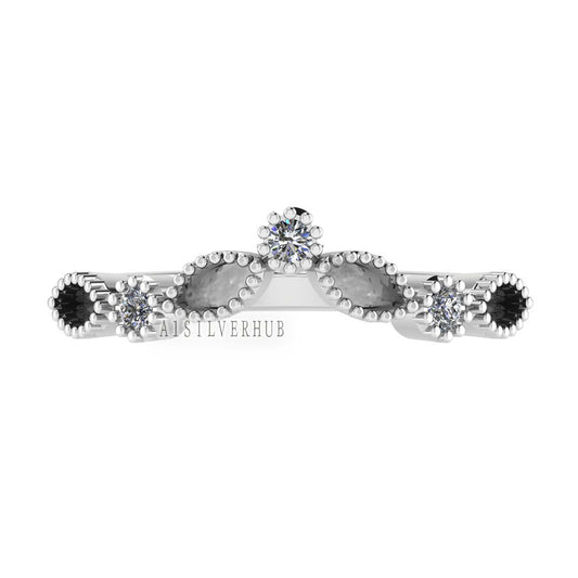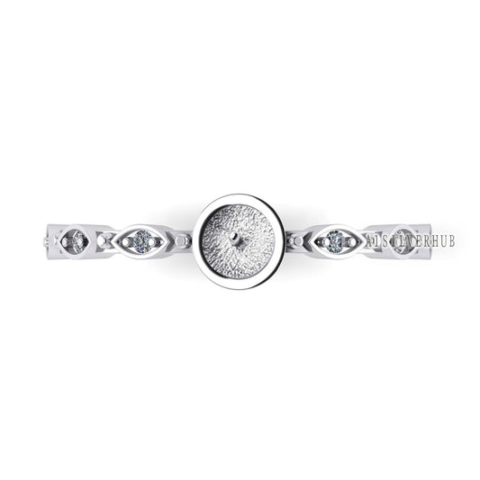 925 Sterling Solid Silver Round 6-9mm with Half Eternity CZ Setted Band Ring, Good for Drilled Stone & Pearl Settings, Keepsake DIY Crafts