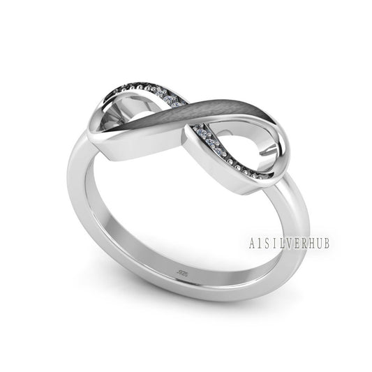 925 Sterling Solid Silver, Infinity Blank Channel Ring with Zircon Setted, Good for Inlay Resin & Ashes Work, Keepsake Breastmilk DIY Crafts