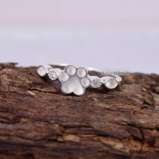 925 Sterling Solid Silver 8mm Dog Paw & Marquise Blank Bezel with CZ Setted Ring, Good for Resin Ashes Work, Keepsake/Breastmilk, DIY Crafts