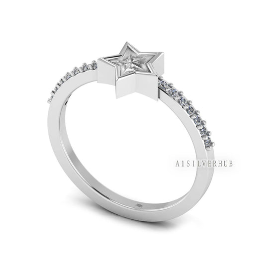 925 Sterling Solid Silver 6mm Star Blank Bezel with CZ Setted Band Ring, Good for Resin & Ashes Work, Keepsake/Breastmilk DIY, Jewelry Craft