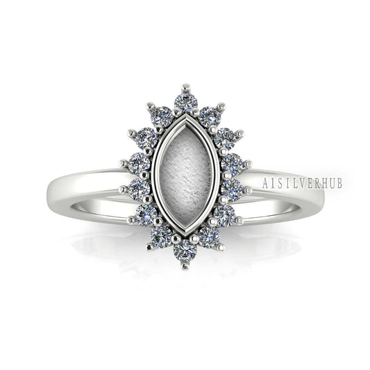 925 Sterling Solid Silver 4x8mm Marquise Blank Bezel with Zircon Setted Ring,Good for Gemstone, Resin & Ashes Keepsake, Breastmilk DIY Craft