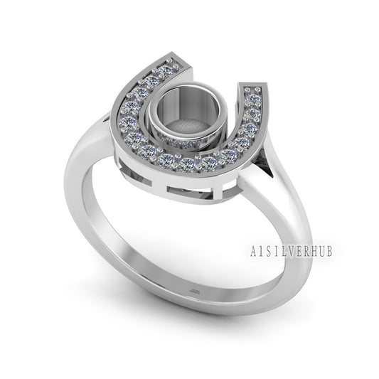 925 Sterling Solid Silver Good Luck Horse Shoe 5mm Round Blank Bezel with CZ Setted Ring, Good for Resin & Ashes Work, Keepsake DIY Crafts
