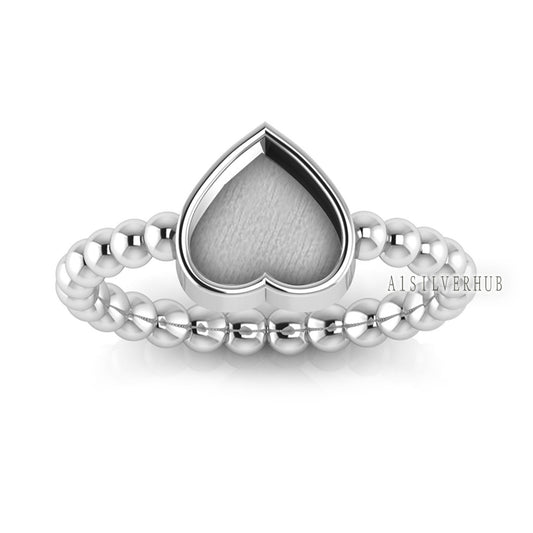 925 Sterling Solid Silver 8mm Heart Shape Blank Bezel Granulation Band Ring, Good for Resin & Ashes Work, Keepsake Breastmilk DIY Crafts