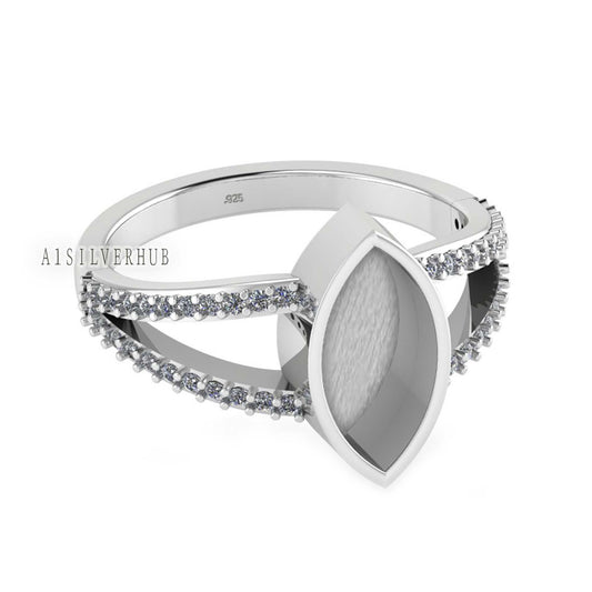 925 Sterling Solid Silver Marquise Blank Bezel with CZ Set Ring, Good for Resin & Ashes Breastmilk DIY Work, Keepsake Ring, Memorial Jewelry