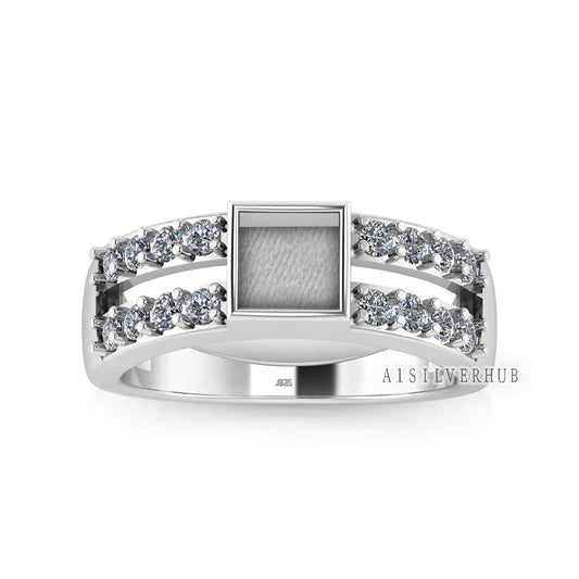 925 Sterling Solid Silver 5x5mm Square Blank Bezel with Zircon Setted Band Men's Ring, Good for Crushed Opal, Inlay, Resin, Ashes Work, DIY