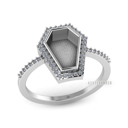 925 Sterling Solid Silver 10x7mm Coffin Blank Bezel with Zircon Setted Ring, Good for Stone, Resin & Ashes, Keepsake/Breastmilk DIY Crafts