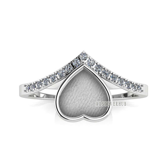 925 Sterling Solid Silver 6mm Heart Blank Bezel with CZ Setted on Band Ring, Good for Resin & Ashes Breastmilk DIY Work, Keepsake Jewelry