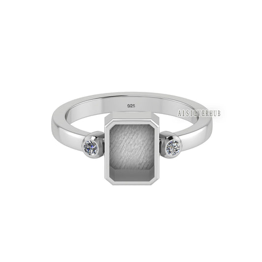 925 Sterling Silver 6x8mm Emerald Shape Blank Bezel CZ Setted Band Ring Setting, Good for Stone, Resin & Ashes Keepsake Breastmilk DIY Craft