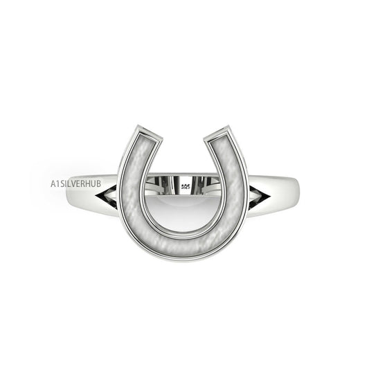 925 Sterling Solid Silver Good Lucky Horse Shoe Full Blank Bezel Ring Setting, Good for Resin & Ashes Work, Keepsake Memorial DIY Crafts