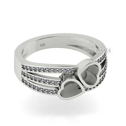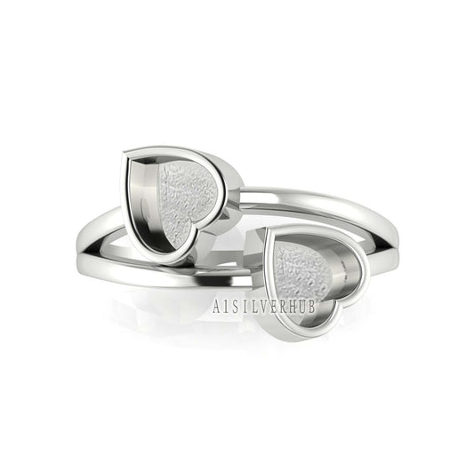 Double Heart Bezel With 925 Sterling Silver 2mm Deep CZ Blank Bezel Ring Setting, Good for Resin & Ashes Breastmilk DIY Work, Keepsake Ring
