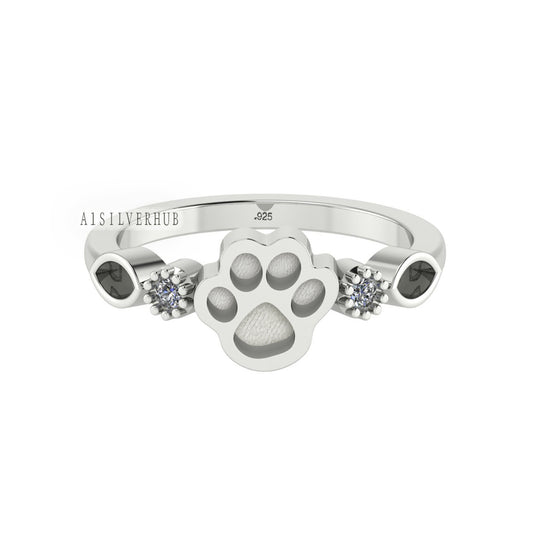 925 Sterling Solid Silver 8mm Dog Paw & Marquise Blank Bezel with CZ Setted Ring, Good for Resin Ashes Work, Keepsake/Breastmilk, DIY Crafts