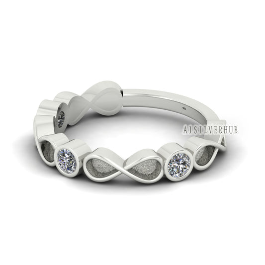 925 Sterling Solid Silver Pear 6x8mm Eternity Double Band Blank with CZ Setted Ring, Keepsake Breast Milk, Resin Stacker DIY, Stackable Ring