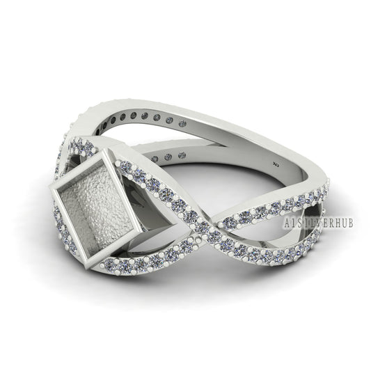 925 Sterling Silver 6mm Square Blank Bezel with CZ Setted Designer Ring, Good for Resin & Ashes Work, Breastmilk/Keepsake Jewelry DIY Crafts