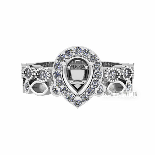 925 Sterling Solid Silver 6x8mm Pear Blank Bezel CZ Setted Band Ring Setting, Good for Stone, Resin & Ashes Keepsake Breastmilk DIY Crafts