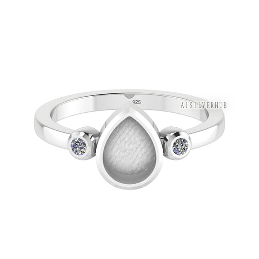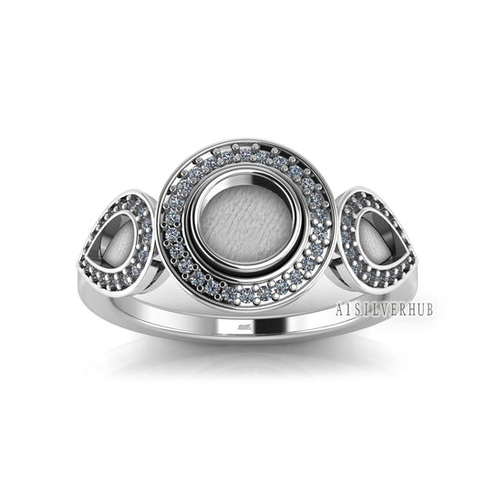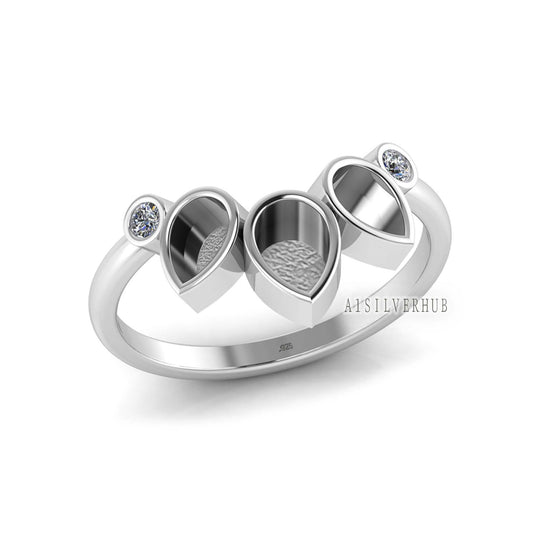 925 Sterling Solid Silver Pear Blank Bezel with Round CZ Setted Ring, Good for Resin & Ashes Work, Breastmilk DIY Crafts, Keepsake Jewelry