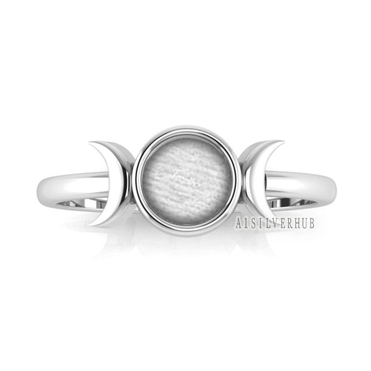 925 Sterling Solid Silver Half Moon with 6mm Round Shape Blank Bezel Ring Setting, Good for Resin & Ashes Work,Keepsake Breastmilk DIY Craft