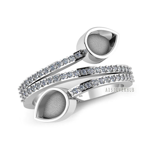 925 Sterling Silver Double Pear 5x7mm Blank Bezel With CZ Setted Band Ring Settings, Good for Resin & Ashes Work, Keepsake/Breastmilk DIY