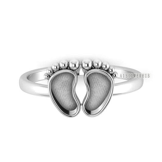 925 Sterling Silver Baby Foot Blank Bezel Adjustable Ring Setting, Good For Pour Resin Work, Keepsake/Breastmilk DIY Crafts, Memorial Gifts