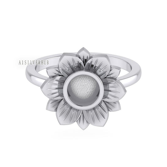 925 Sterling Solid Silver Sunflower Round Blank Bezel Ring Setting, Good for Resin & Ashes Work, Keepsake Breastmilk Jewelry DIY Crafts