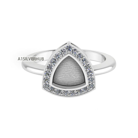 925 Sterling Solid Silver Trillion Shape 8mm Blank Bezel with CZ Setted Ring, Good for Gemstone, Resin & Ashes Work, Keepsake Breastmilk DIY