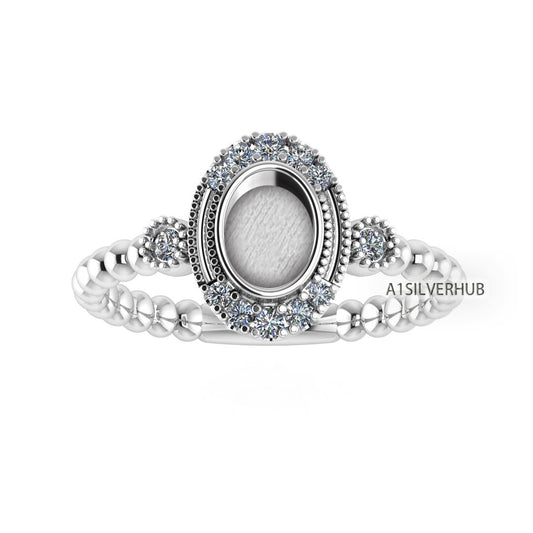 925 Sterling Solid Silver 6x5mm Oval Blank Bezel with CZ Setted, Good for Resin & Ashes Work Breastmilk DIY Craft, Keepsake Granulation Ring