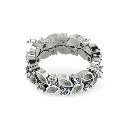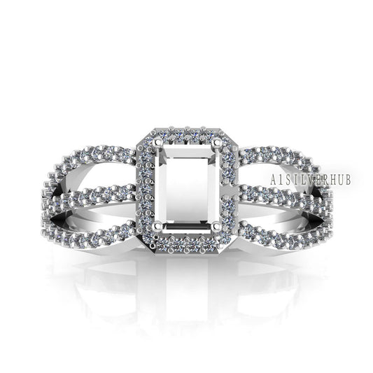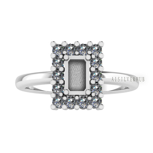 925 Sterling Solid Silver 3x5mm Octagon Blank Prong Setting with CZ Setted Band Halo Ring, Good For Stone, Resin & Ashes Work, Keepsake DIY