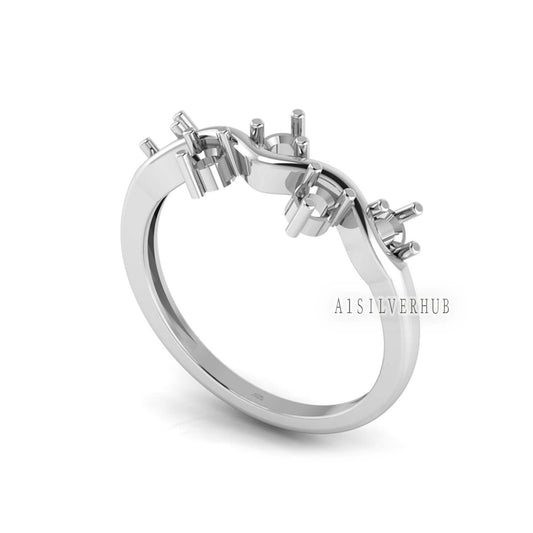925 Sterling Solid Silver 3mm Round Curve 5 Stones Blank Prong Ring Setting, Good for Zircon & Stone DIY Work, Engagement Ring, Gift For Her